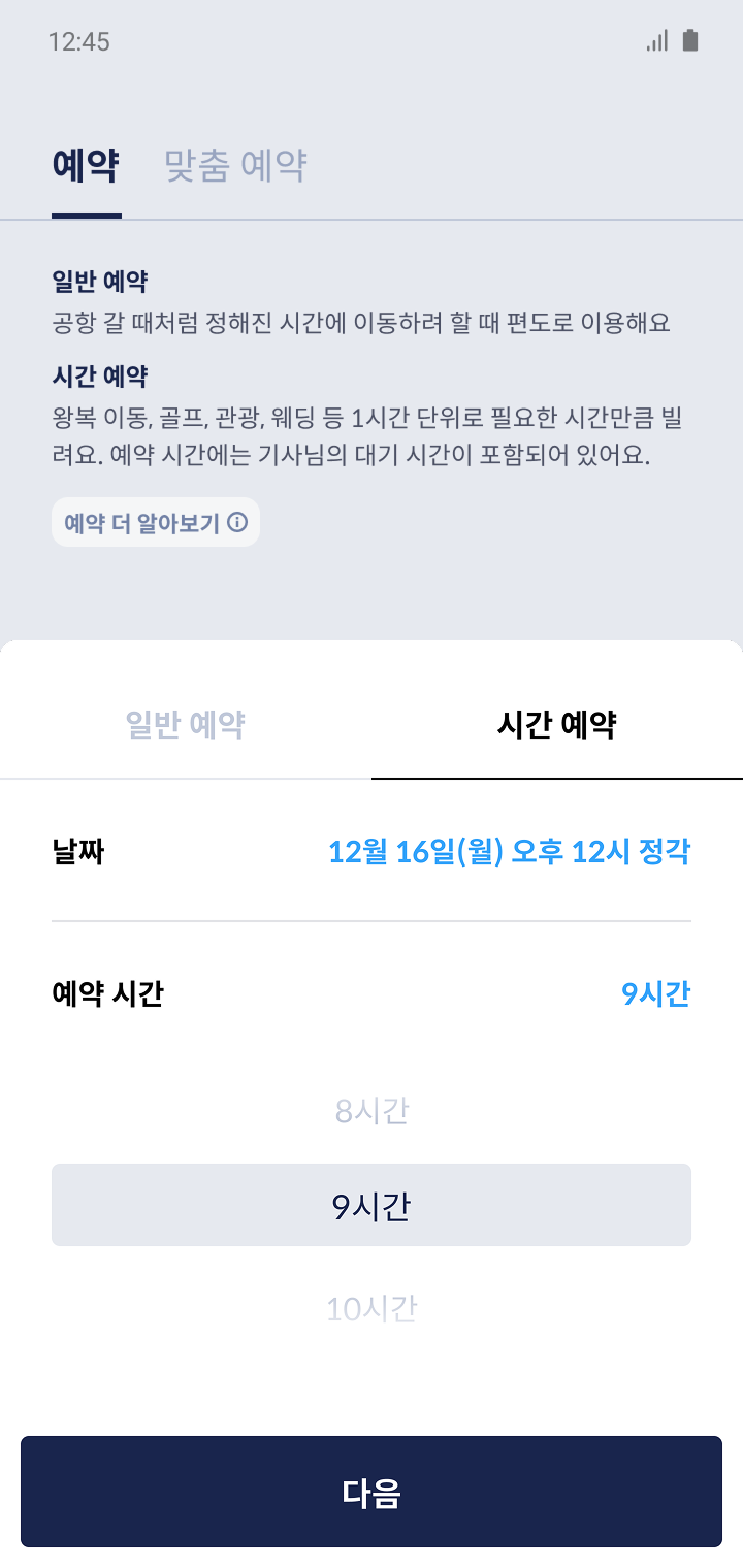 1. Tada go to 'Reservation' at the bottom of the app > Please select the desired date and time in 'Time Reservation'.