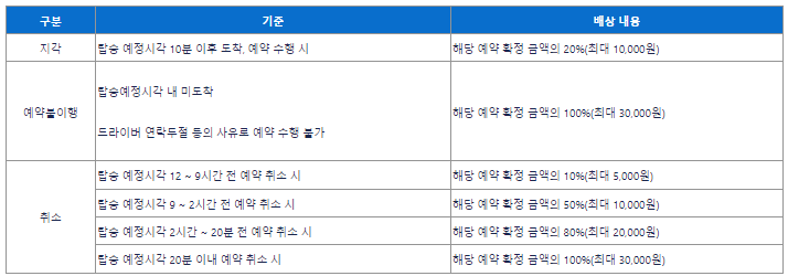 호출예약 위약금 정책 변경 안내
